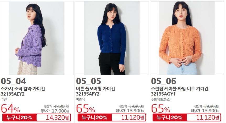 할인 품목 : 원피스, 니트, 스커트 등
