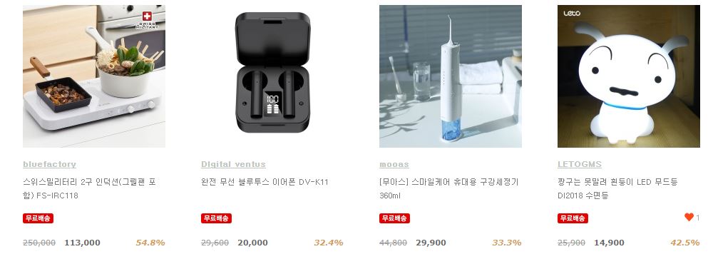 할인 품목 : 의류, 마우스, 캠핑용품 등