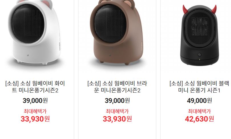 할인 품목 : 가습기, 건기요, 히터 등