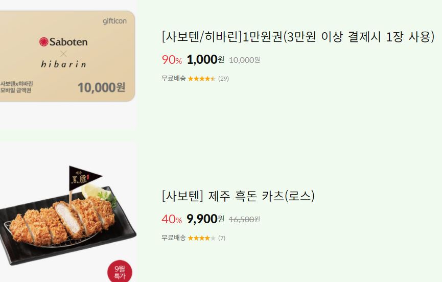 할인 브랜드 : 이디야, 사보텐, 버거킹 등