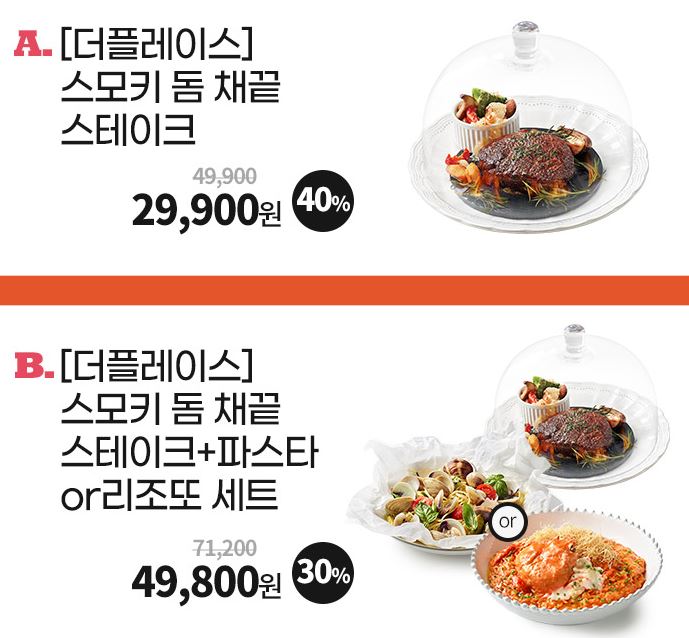 할인 메뉴 : 스모키 돔 채크 스테이크, 세트메뉴 등