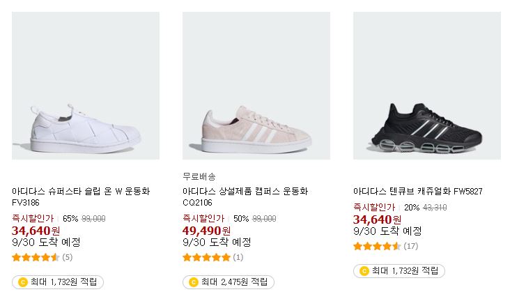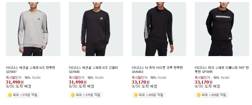 할인 품목 : 운동화, 맨투맨, 자켓 등