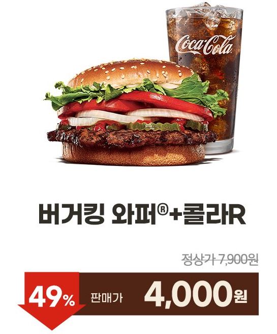 버거킹 다양한 메뉴를 할인 판매하네요.