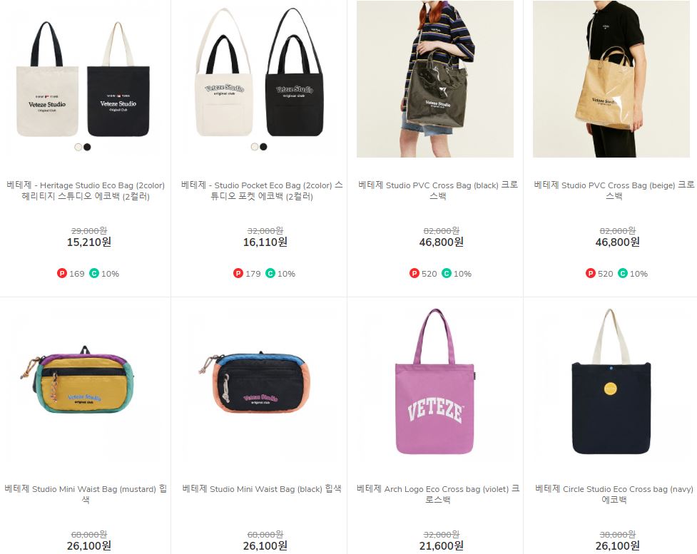 할인 품목 : 백팩, 크로스백, 맨투맨 등