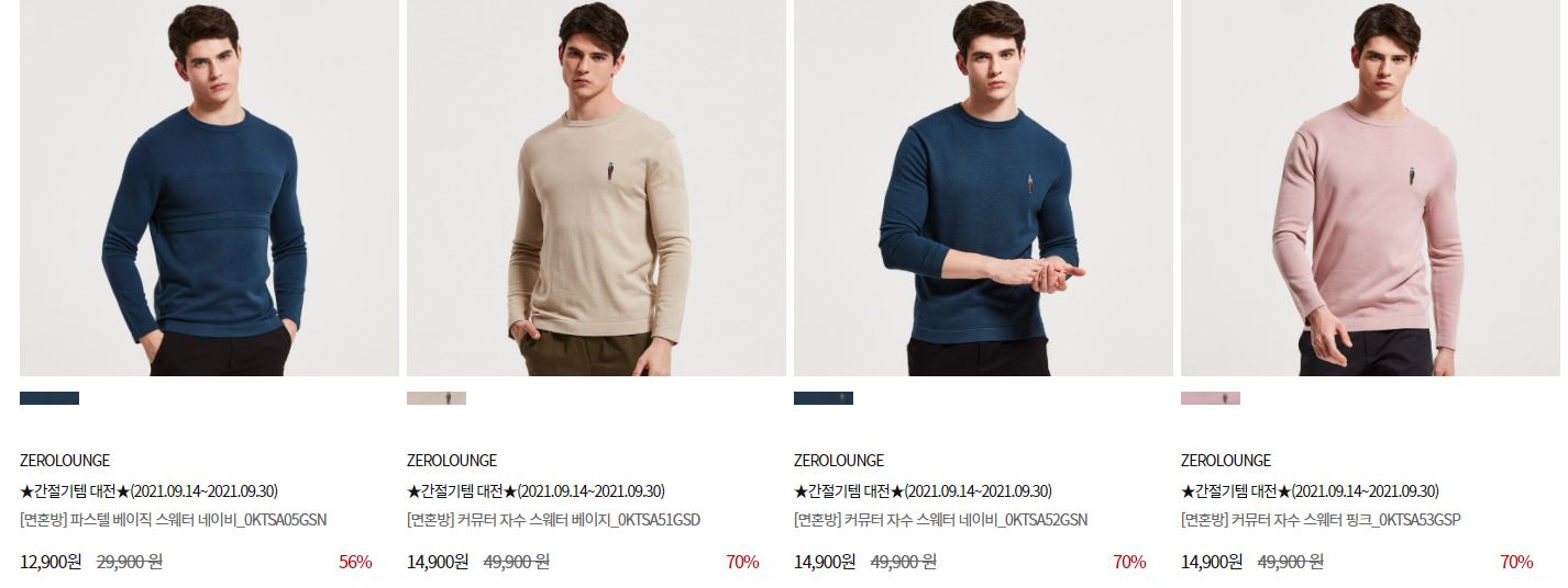 할인 품목 : 셔츠, 팬츠, 가디건 등
