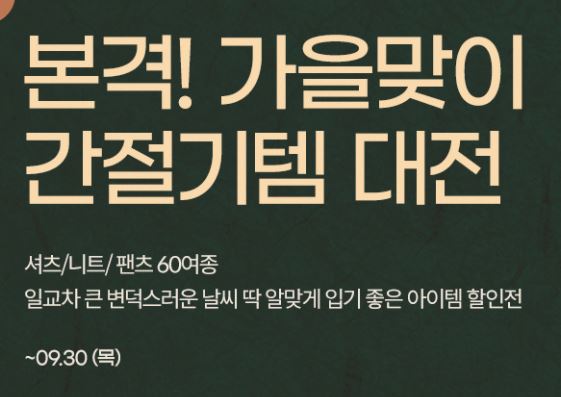 | 위즈위드 가을 아이템 최대 60% 세일 (0) | 2021.09.16 |