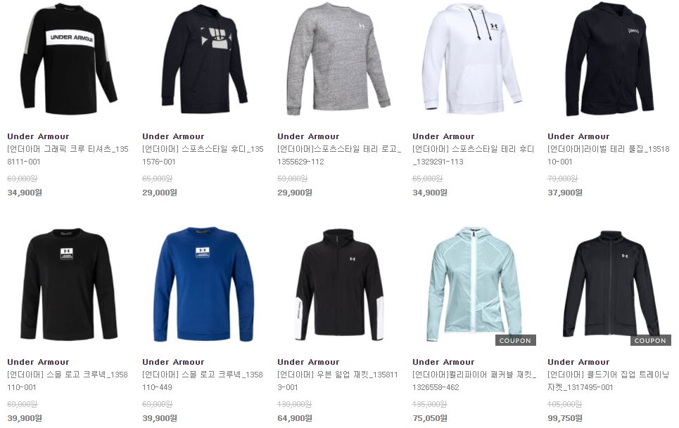 할인 품목 : 맨투맨, 재킷 등