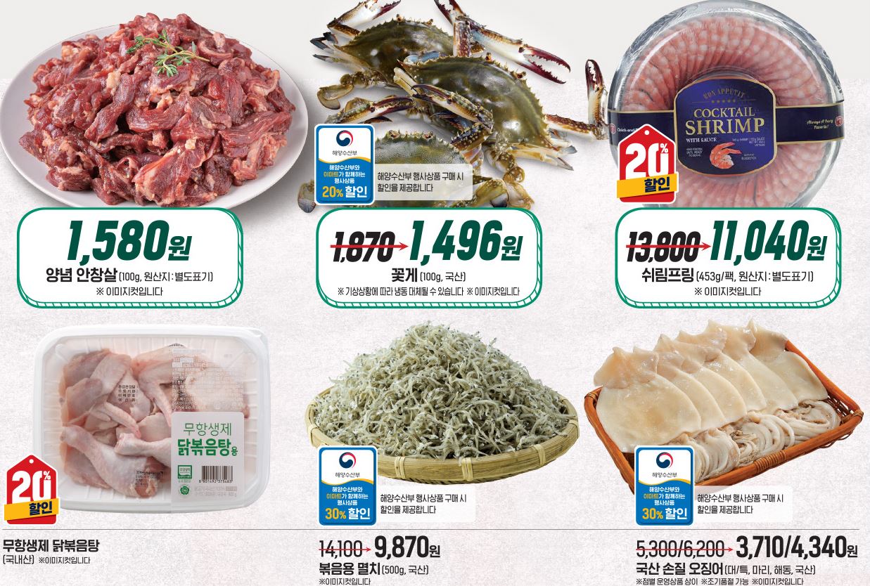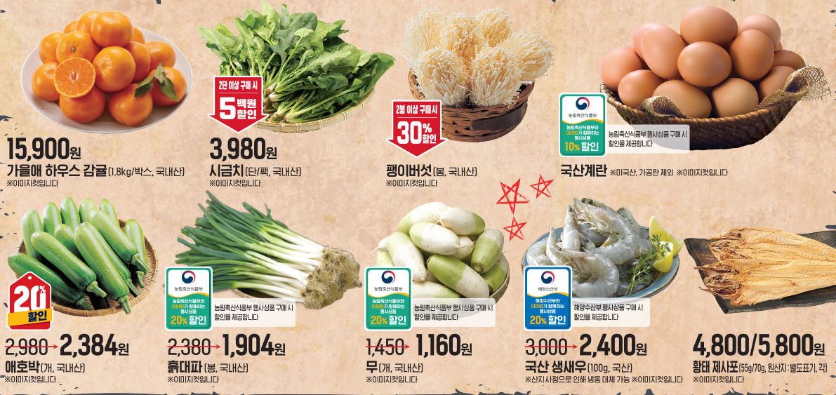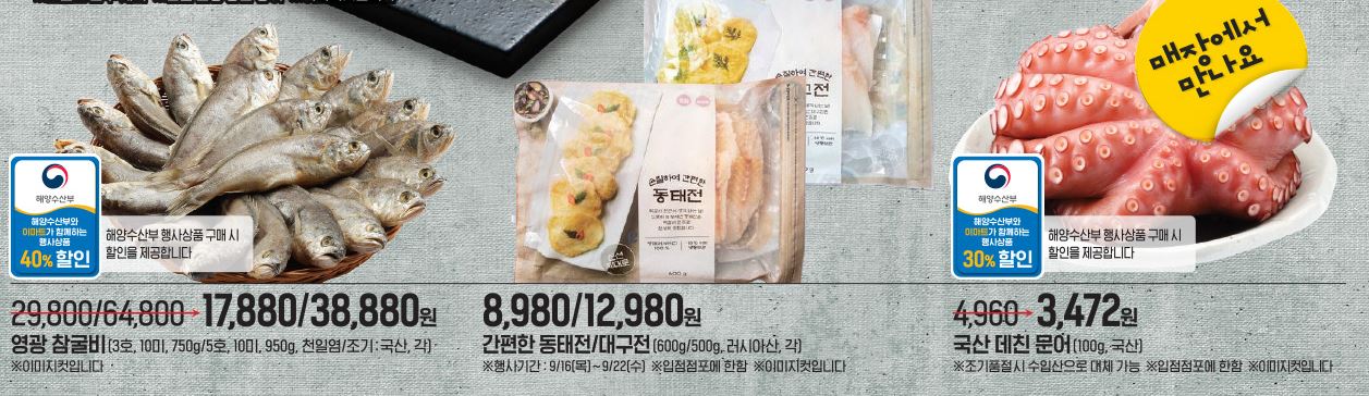 할인 품목 : 장어, 과일, 새우 등