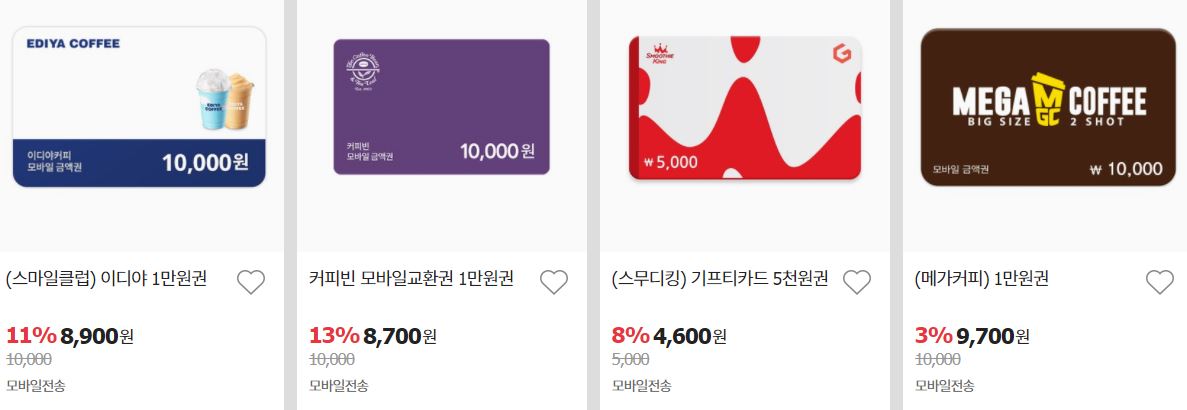 | 매머드 커피 1만원권 11% 할인 (0) | 2021.09.17 |