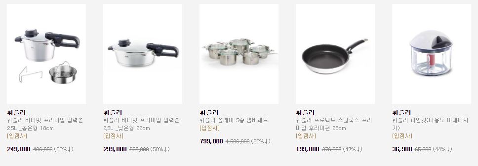 할인 품목 : 압력솥, 냄비, 프라이팬 등