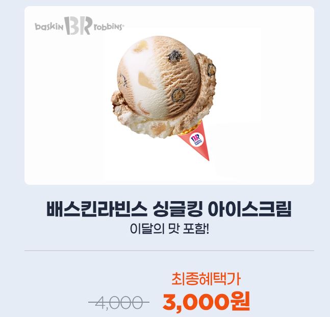 할인 브랜드 : 배스킨라빈스, 메가박스, 던킨 등