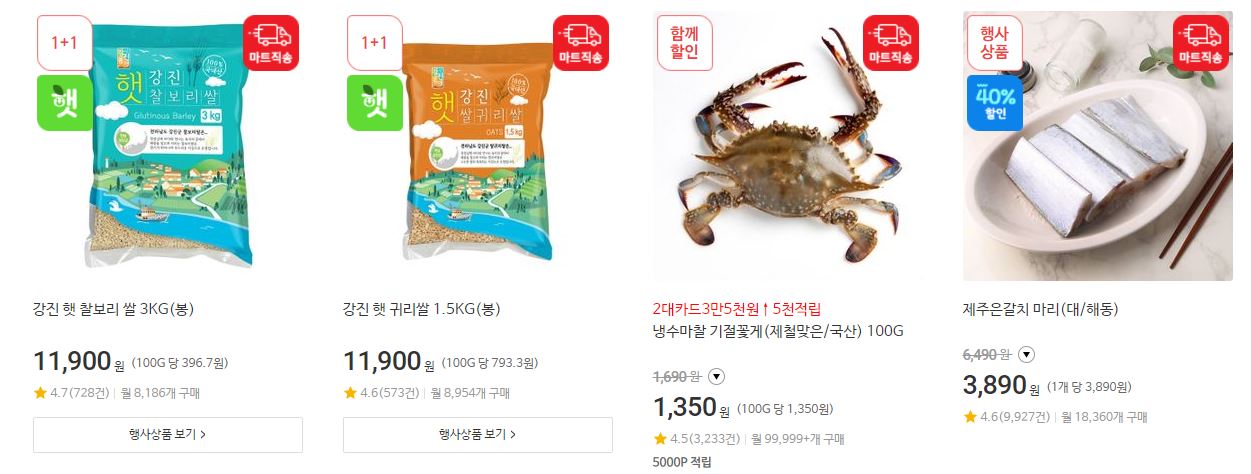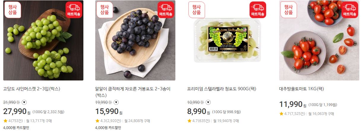 할인 품목 : 육류, 과일, 해산물 등