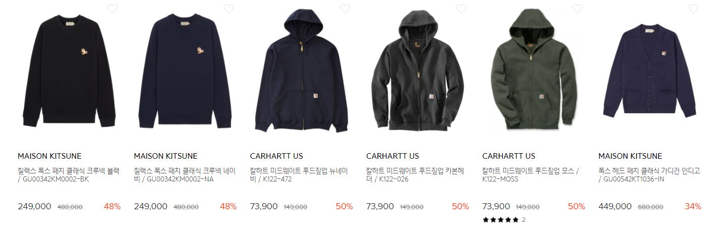 할인 품목 : 맨투맨, 자켓 등