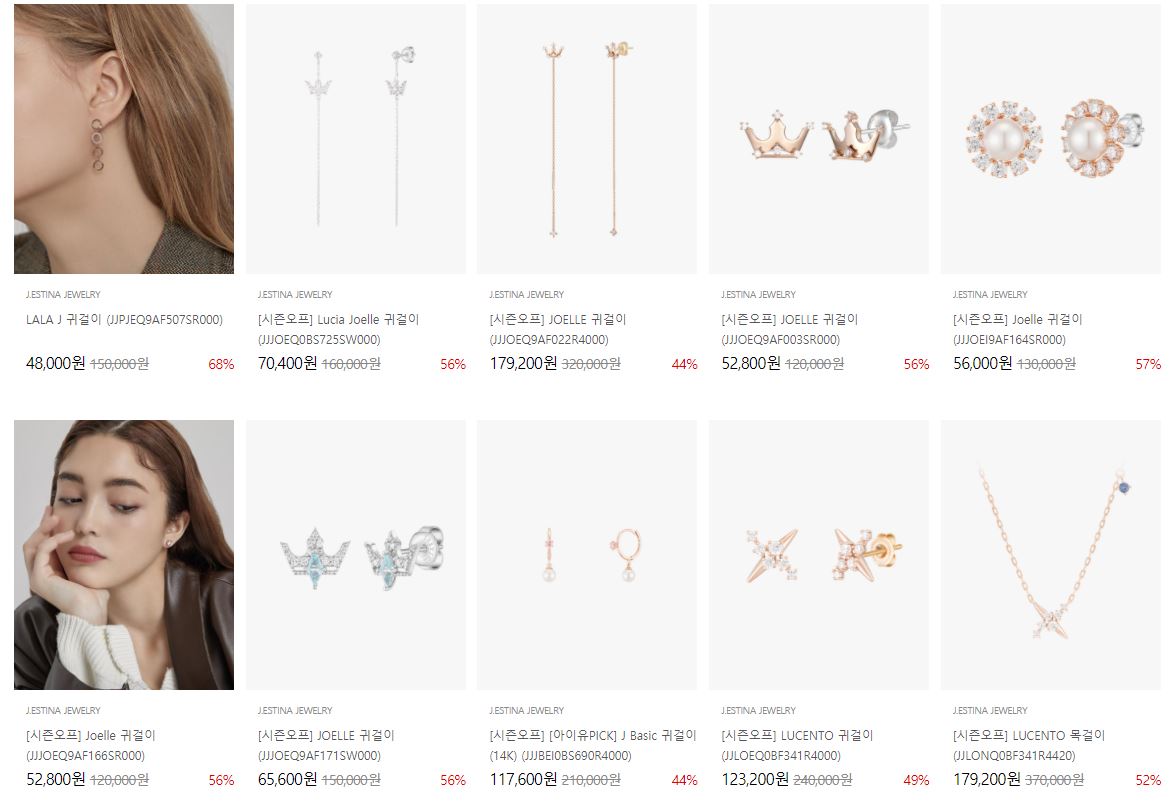 할인 품목 : 귀걸이, 목걸이, 가방 등
