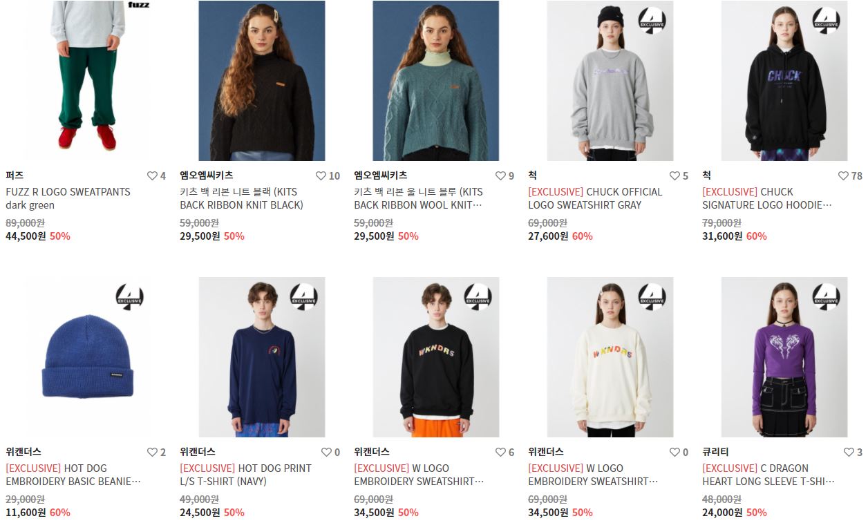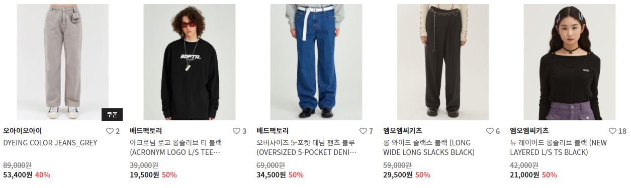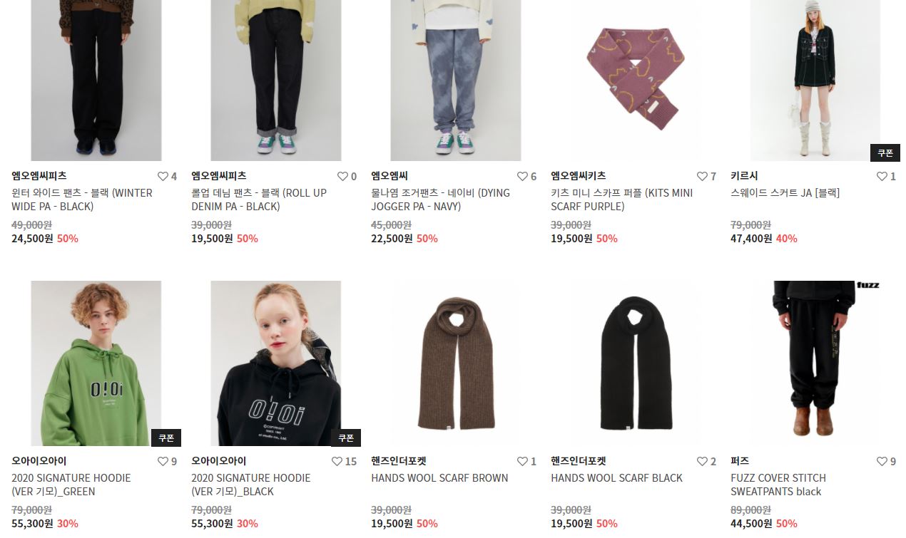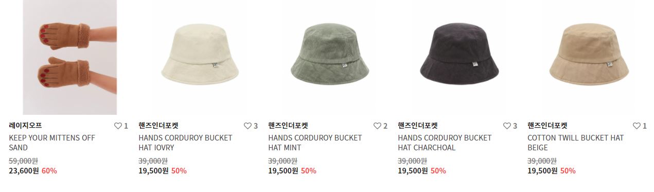 할인 품목 : 티셔츠, 팬츠, 모자 등