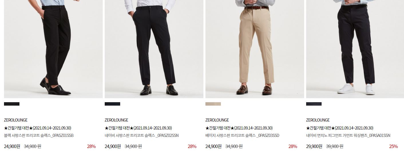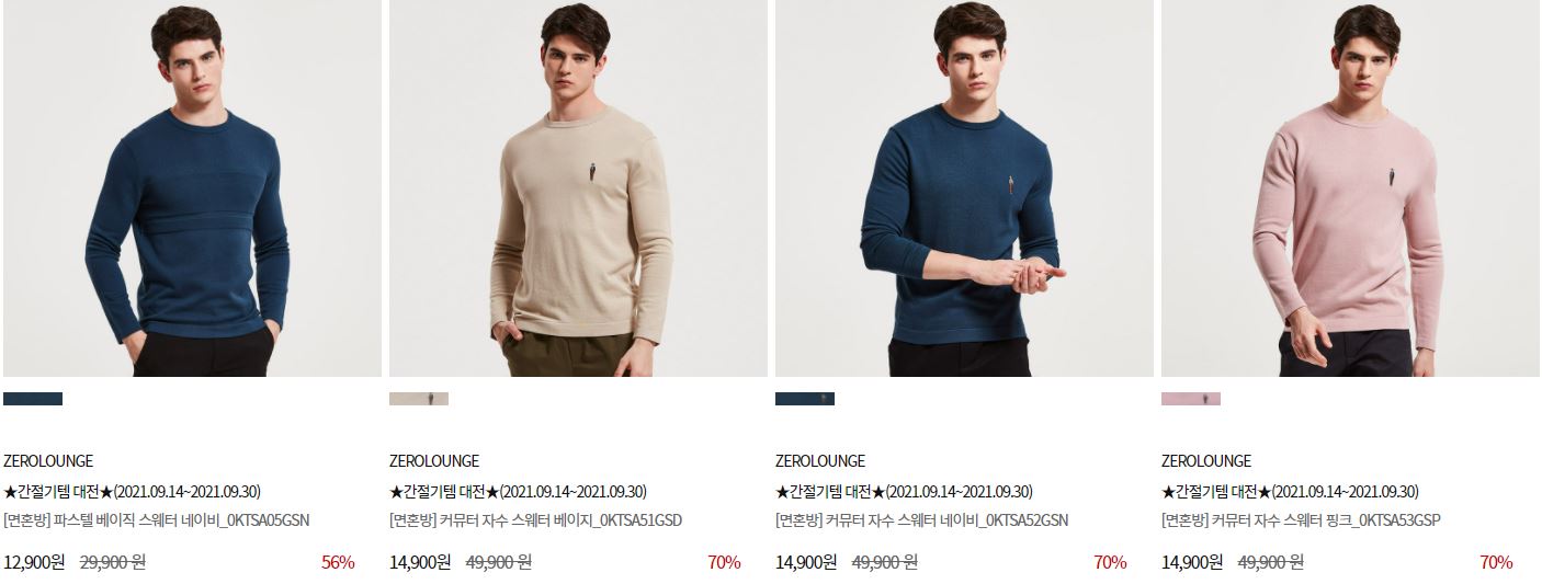 할인 품목 : 티셔츠, 가디건, 팬츠 등