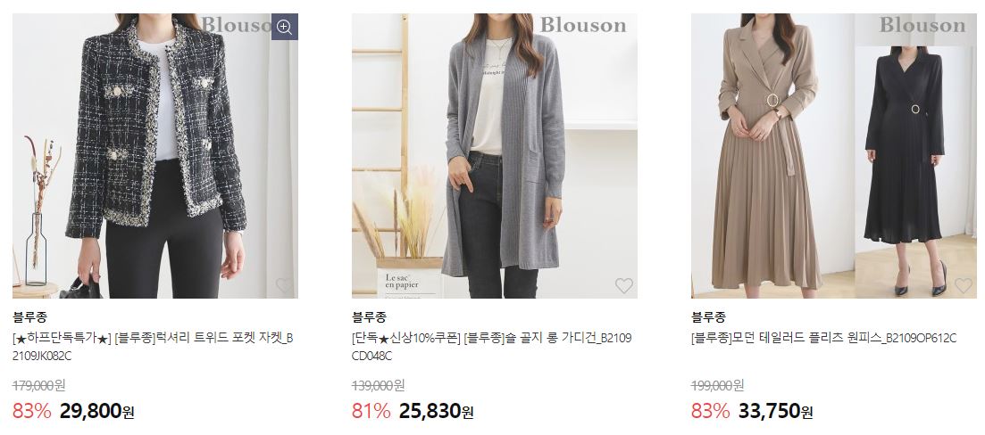 쉬즈미스/블루종 외 최대 92% 세일 정보 [링크]