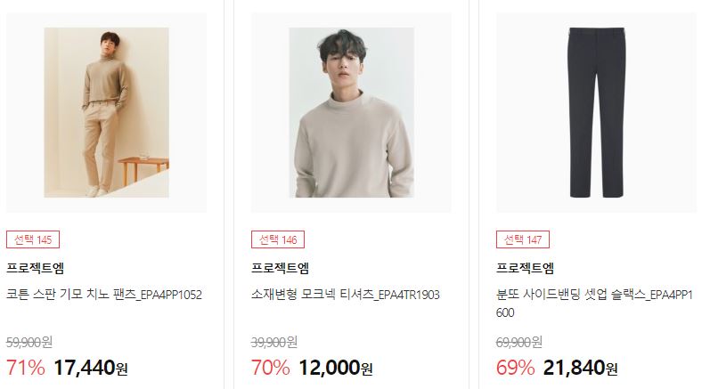 프로젝트엠 다양한 제품을 할인 판매하네요.