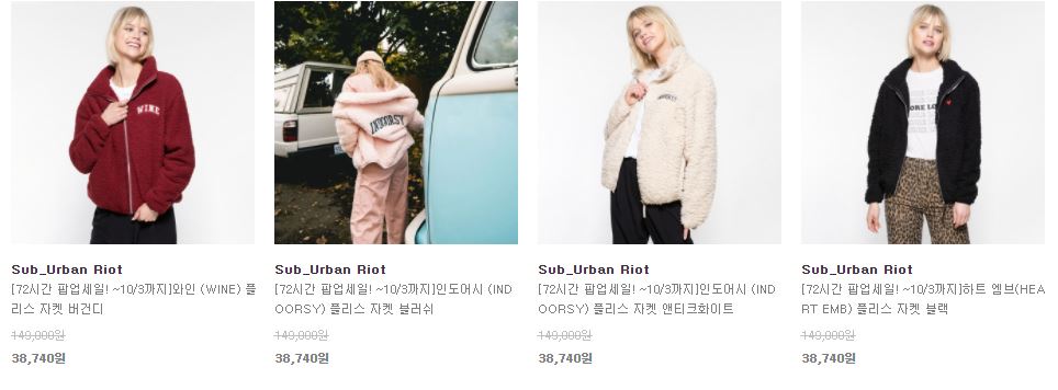 서브얼반라이엇 다양한 제품을 할인 판매하네요.