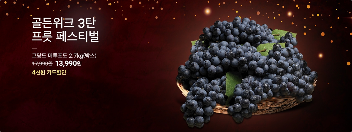 할인 품목 : 척아이롤, 킹크랩, 머루포도 등