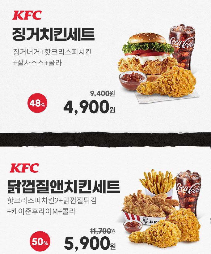 KFC 인기메뉴 3종 최대 50% 할인 정보 포스팅입니다.