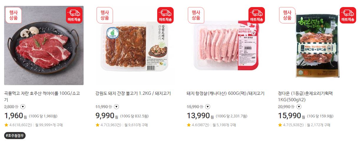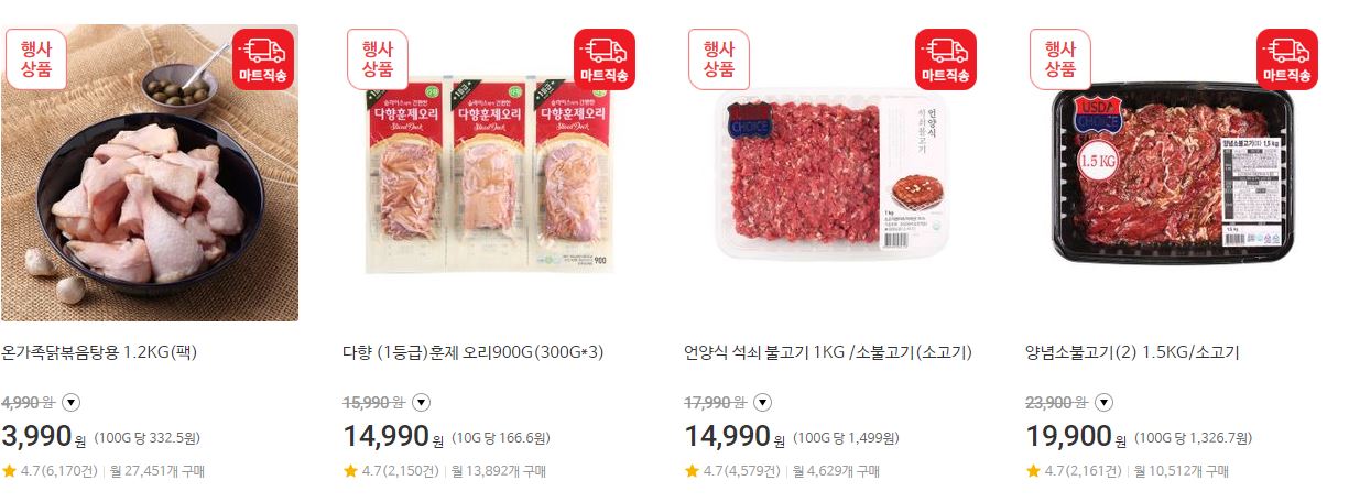 할인 품목 : 육류, 과일 등