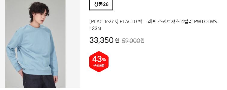 할인 품목 : 팬츠, 티셔츠, 가디건 등