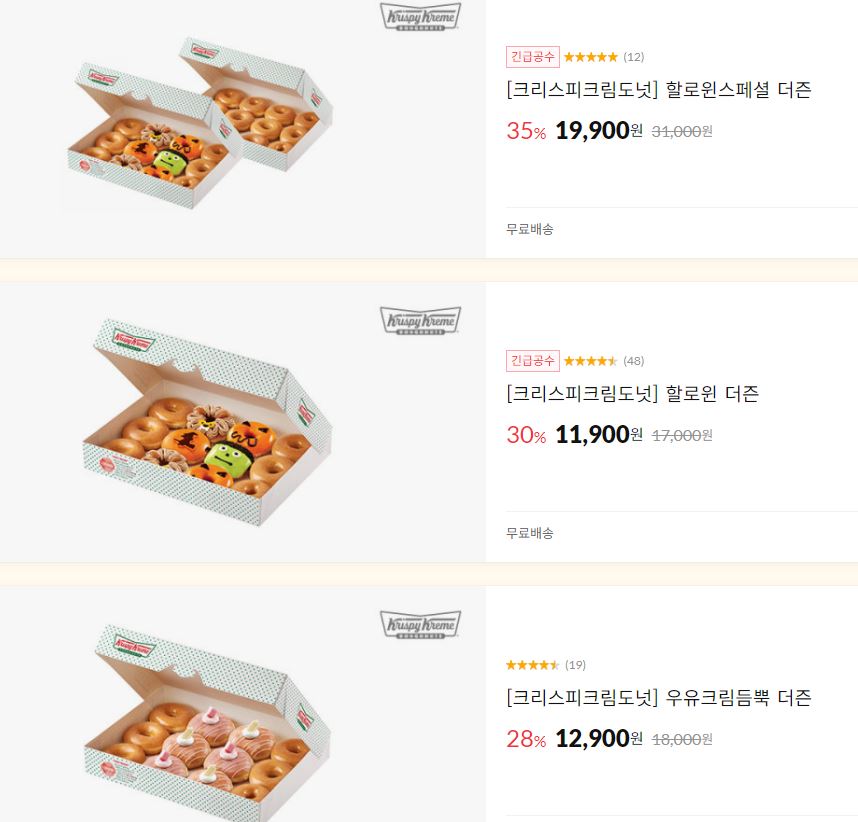 할인 메뉴 : 할로윈 더즌, 우유크림듬뿍 더즌 등