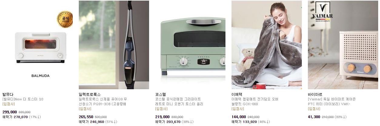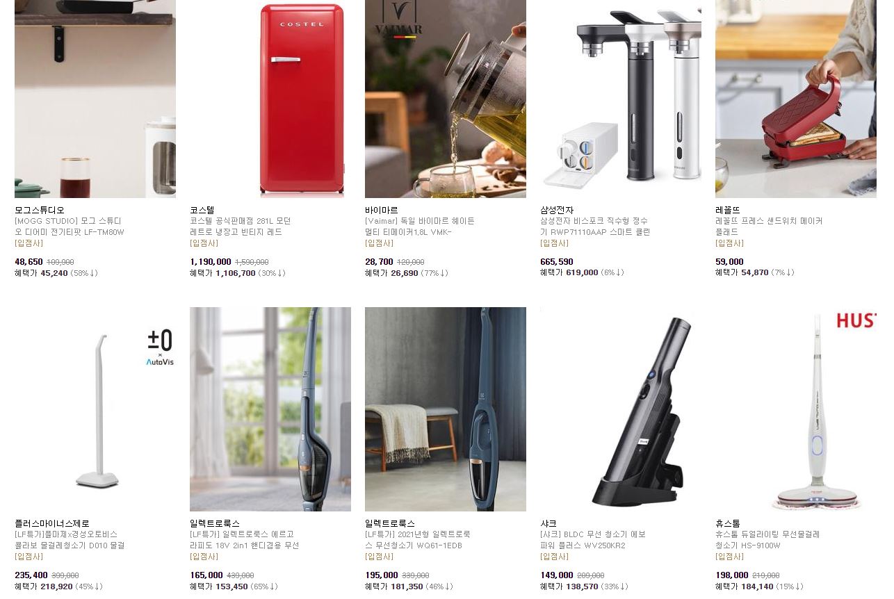 할인 품목 : 오븐기, 전기포트, 가습기 등