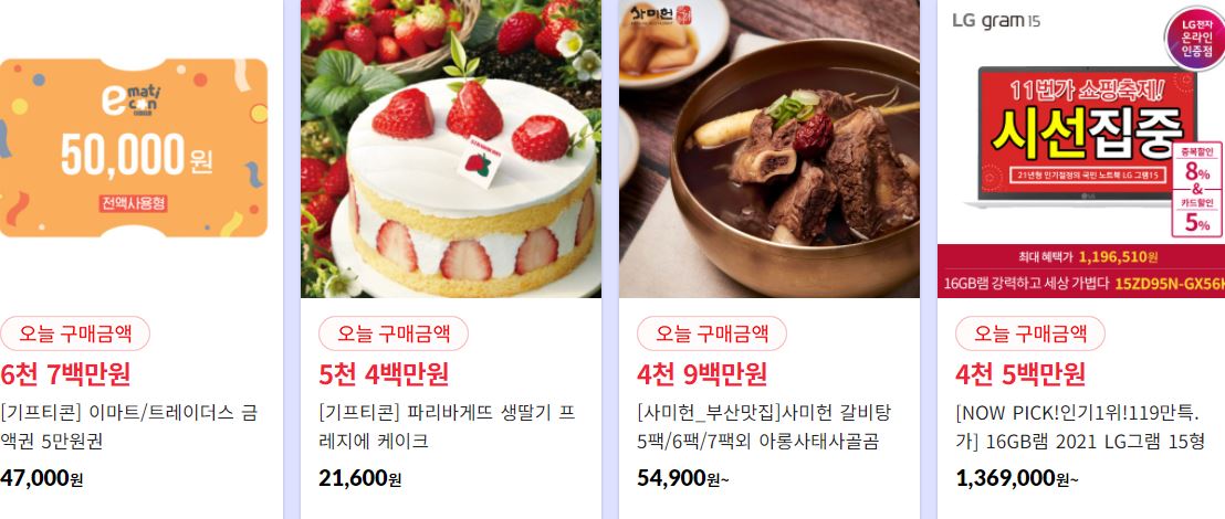 할인 품목 : E쿠폰, 의류, 화장품, 가전 등