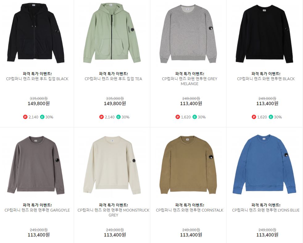 CP컴퍼니 다양한 제품을 할인 판매하네요.