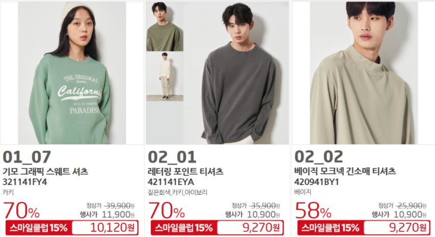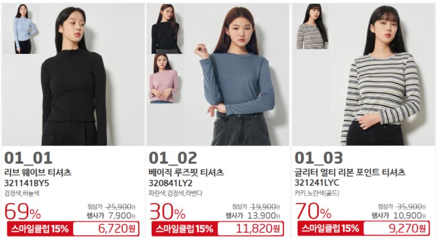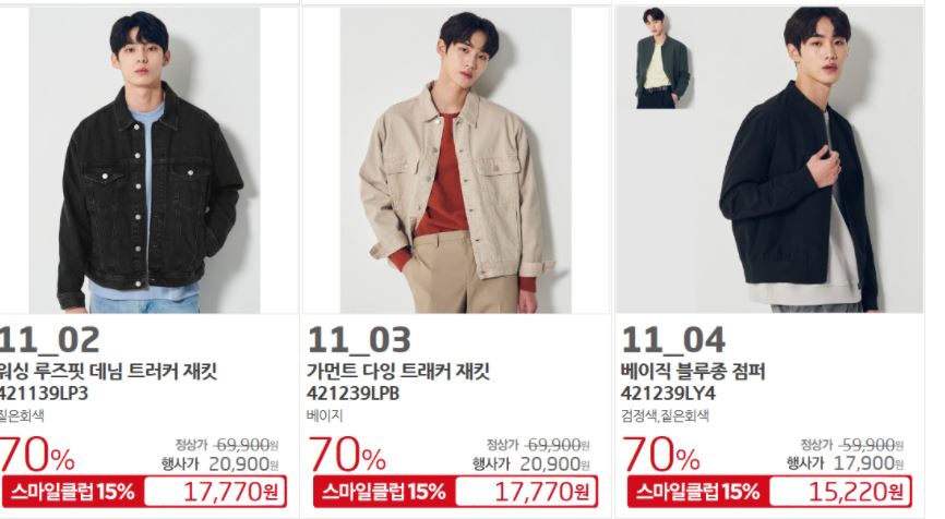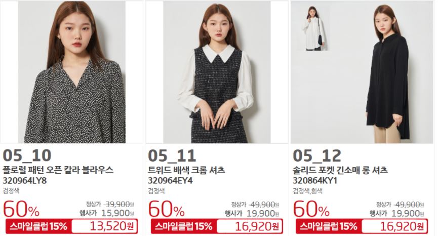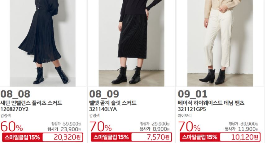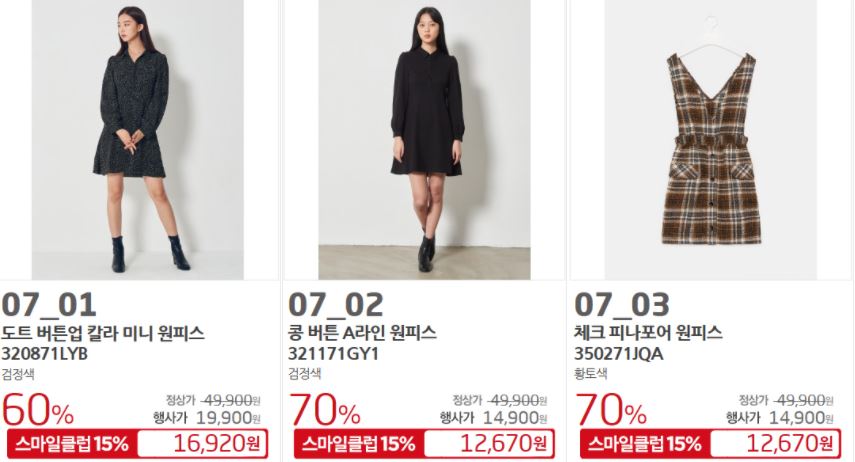 할인 품목 : 원피스, 티셔츠, 자켓 등