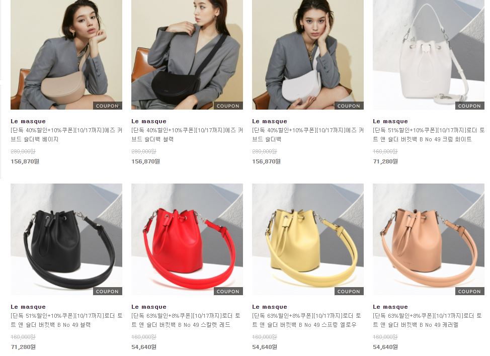 할인 품목 : 숄더백, 버킷백 등