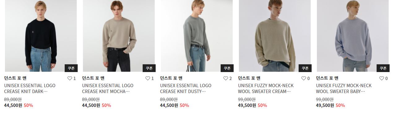 할인 품목 : 니트, 가디건, 베스트 등