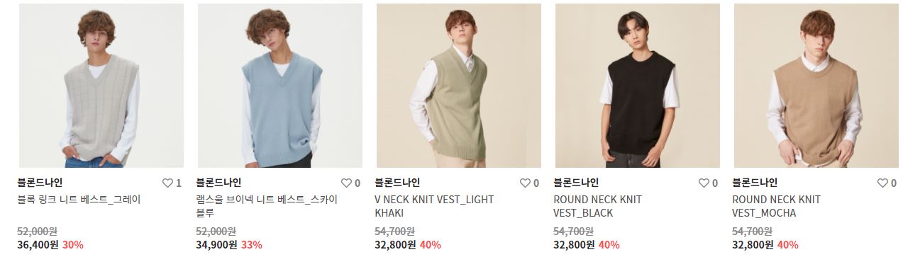 할인 품목 : 니트, 가디건, 베스트 등