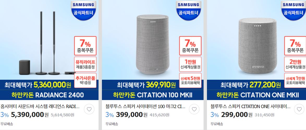 할인 품목 : 무선 이어폰, 사운드바 등