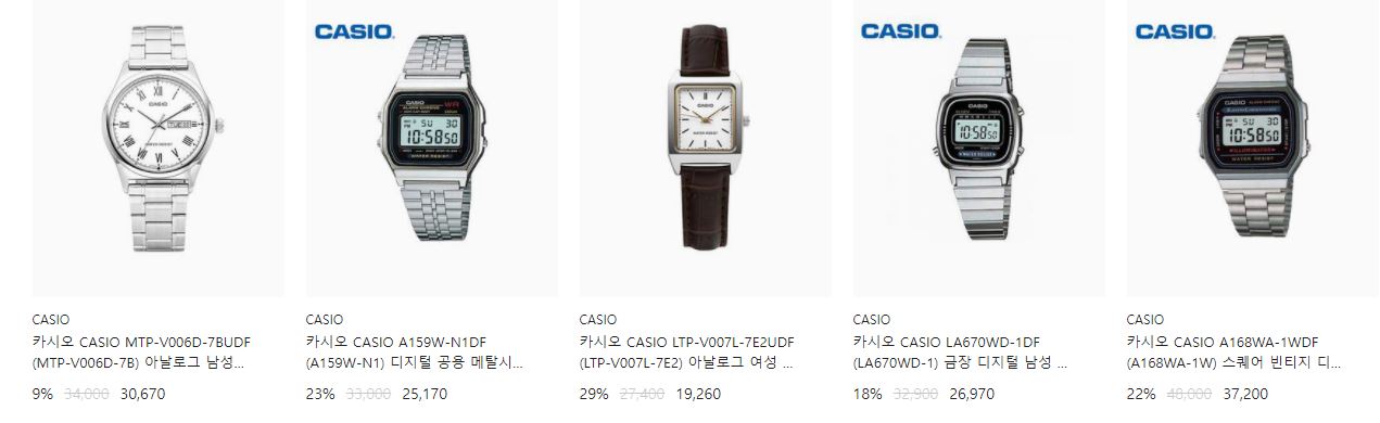 할인 브랜드 : 해밀턴, 세이코, 시티즌 등