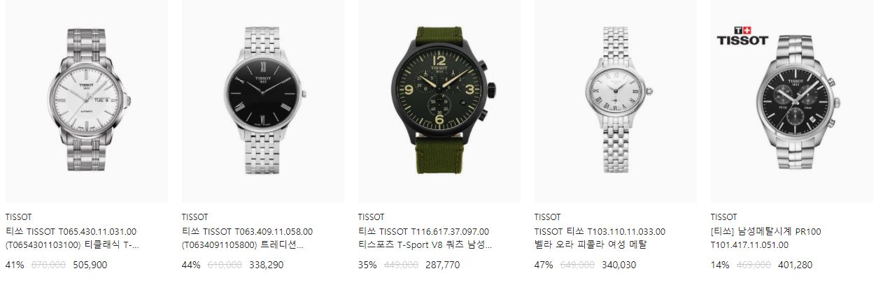 할인 브랜드 : 해밀턴, 세이코, 시티즌 등