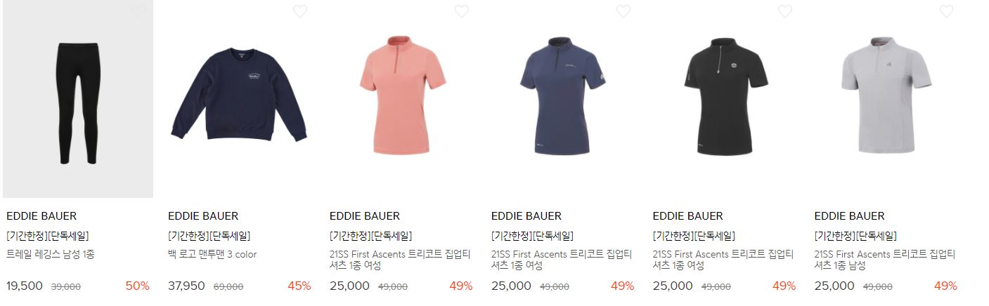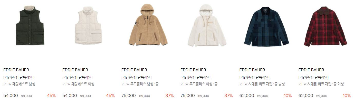 EDDIE BAUER 다양한 제품을 할인 판매하네요.