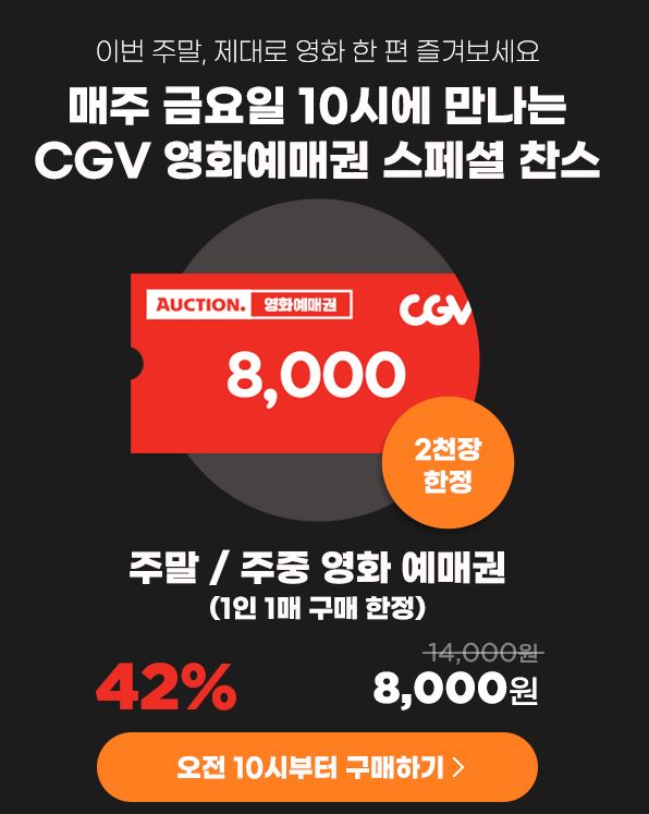 CGV 영화예매권 42% 할인 정보 포스팅입니다.