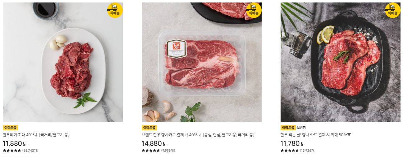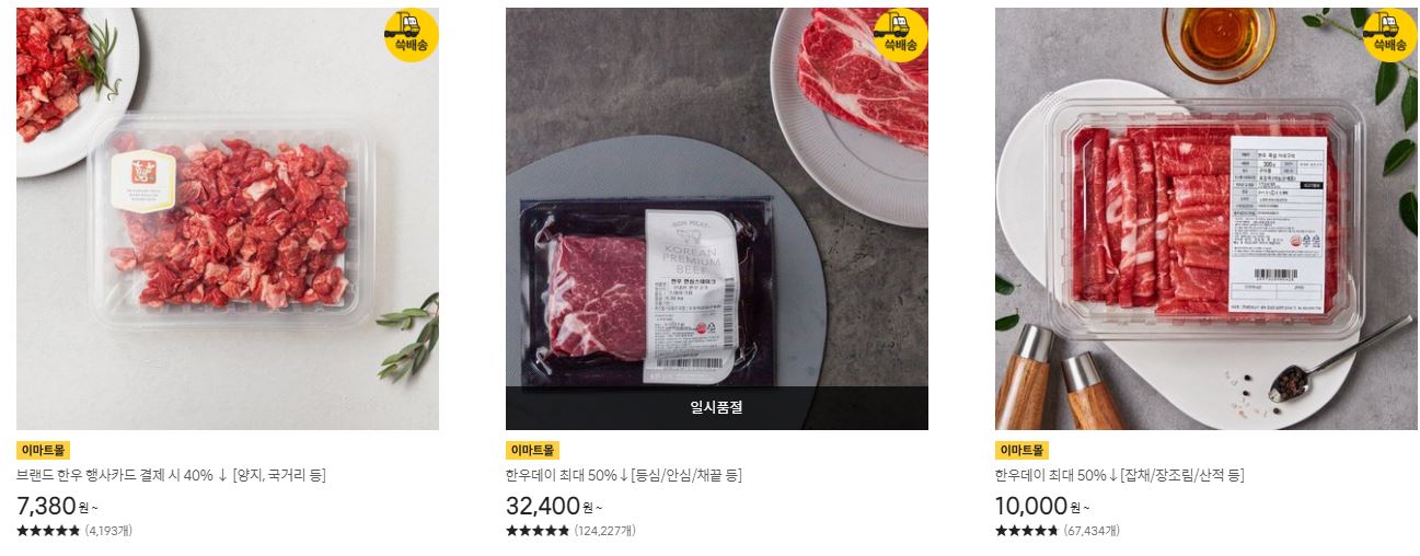 한우 다양한 제품을 할인 판매하네요.