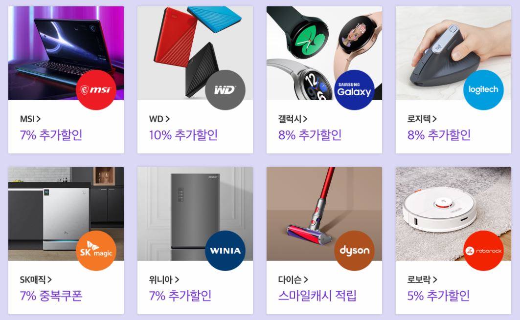 할인 품목 : 가전, 의류, 생필품, 화장품 등