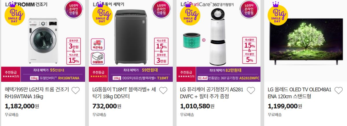 LG전자 다양한 제품을 할인 판매하네요.