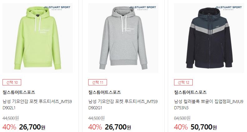 할인 품목 : 후드티셔츠, 점퍼, 팬츠 등