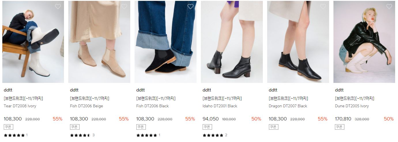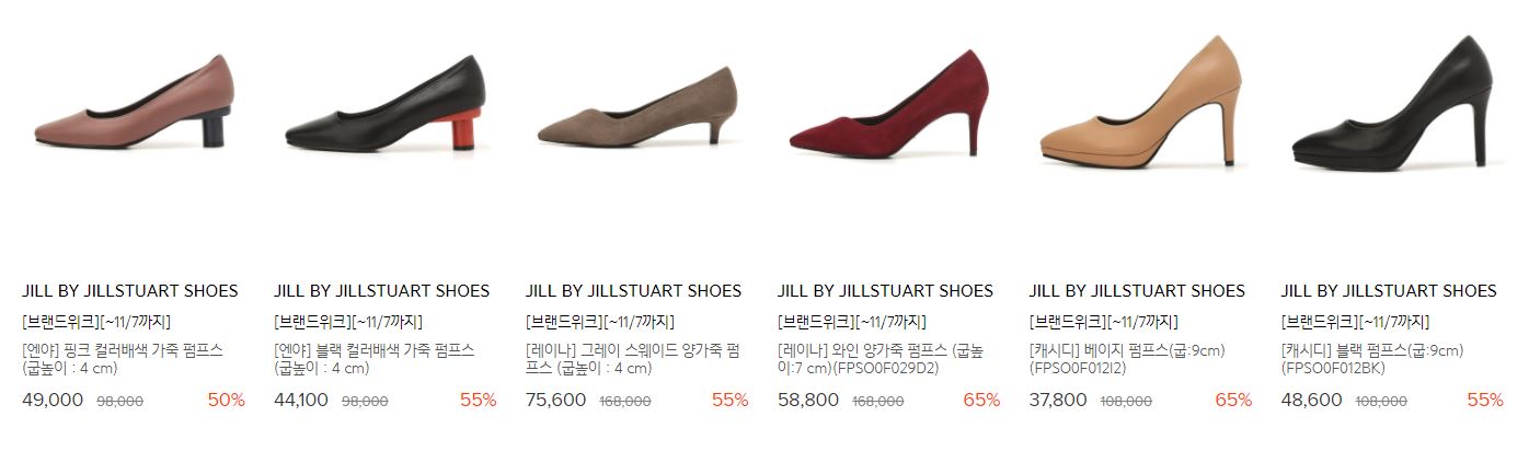 할인 품목 : 펌프스, 플랫슈즈, 앵클부츠 등