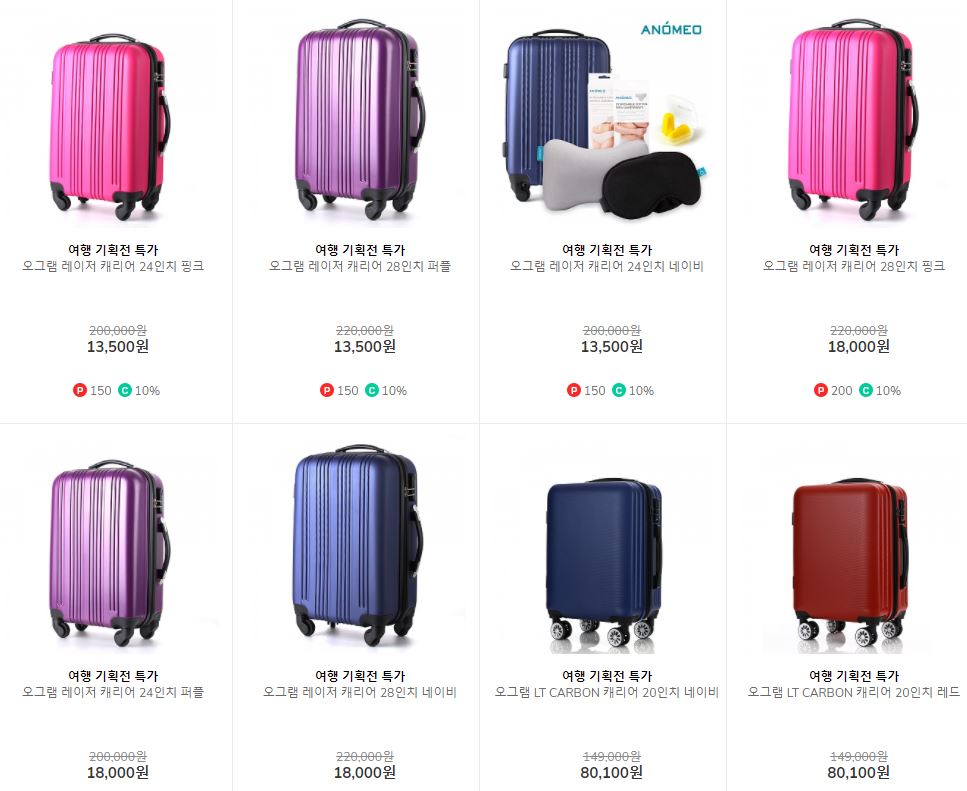 할인 품목 : 캐리어, 목베게, 안대 등