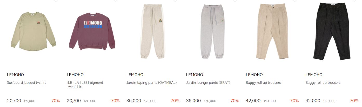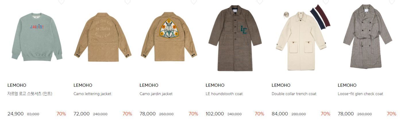 할인 품목 : 맨투맨, 코트, 팬츠 등