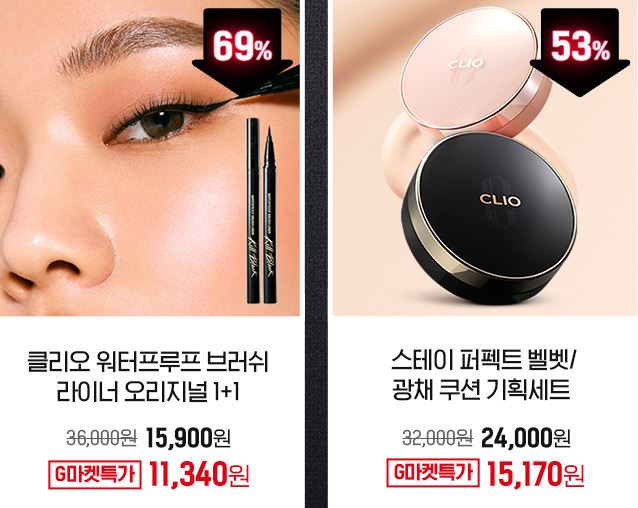 클럽클리오 다양한 제품을 할인 판매하네요.