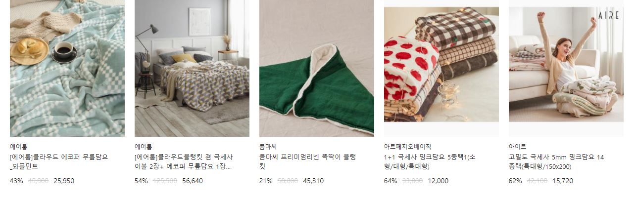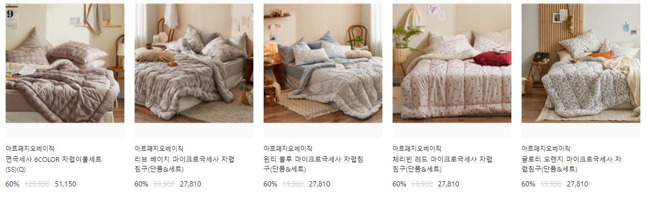 할인 품목 : 이불, 패드 등