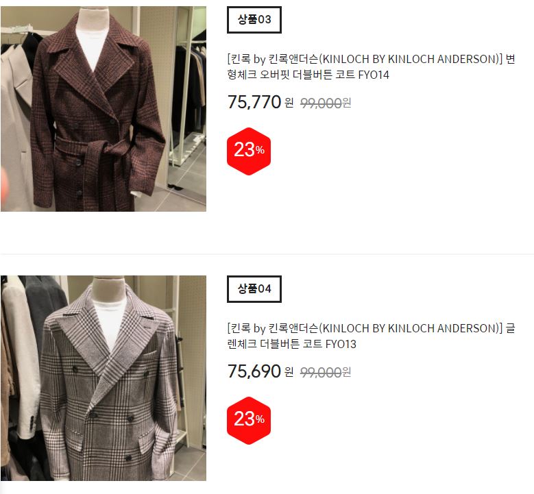 킨록 by 킨록앤더슨 프리미엄 코트 6종 할인 정보 [링크]